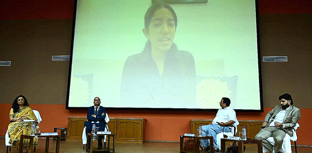 शाम्भवी शर्मा ने वर्चुअल माध्यम से छात्रों को संबोधित करते हुए आर्टिफिशियल इंटेलिजेंस (AI) के जिम्मेदार एवं मानव-केंद्रित उपयोग पर ज़ोर दिया। उन्होंने अपने नवाचार-आधारित प्रोजेक्ट्स के माध्यम से यह साझा किया कि किस प्रकार AI का उपयोग जीविका दीदियों के स्वास्थ्य, वेलनेस और सशक्तिकरण में किया जा रहा है।