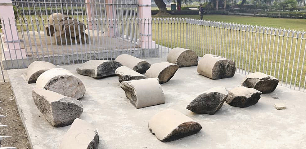 Historically, excavations carried out between 1912–15 and 1951–55 revealed a massive Mauryan assembly hall supported by 80 stone pillars, arranged in a grid of 10 rows east–west and 8 rows north–south, with approximately 15 feet of spacing between each pillar. The hall, which faced south, is believed to have served as an important administrative or ceremonial structure during the Mauryan period.