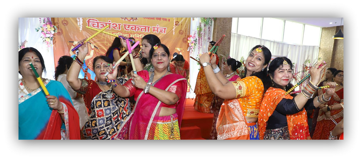 माता रानी के सबसे बड़े पर्व नवरात्र के अवसर पर हर जगह डांडिया और गरबा की धूम रहती है। हर कोई रंग- बिरंगे खूबसूरत पारंपरिक परिधानों में सज- धज कर माता का स्वागत करने के लिए तैयार रहता है। मान्यता है कि इस नवरात्रि पर दुर्गा माता अपने मायके आती हैं, जिनके स्वागत के लिए दुर्गा पूजा और डांडिया डांस का आयोजन किया जाता है।चित्रांश एकता मंच महिला महिला समिति ने इस मौके पर डांडिया महोत्सव का आयोजन किया। कार्यक्रम की शुरूआत दीप प्रज्वलित कर की गयी।रंग-बिरंगे परिधानों में महिलाओं ने जमकर डांडिया पर डांस किया।