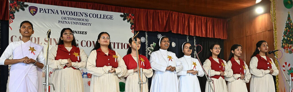 In celebration of Christmas 2025, Patna Women’s College (Autonomous) organized a lively Christmas Carol Singing Competition at the Open-Air Stage Hall of the college campus. The event, conducted in both Hindi and English, showcased students’ musical talent while spreading the festive joy of Christmas.