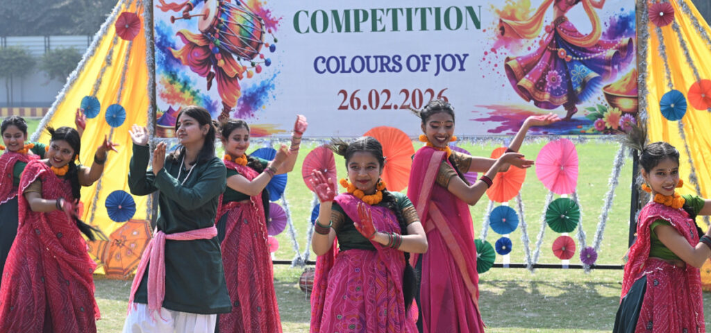 Nine groups participated in the Holi Dance Competition, presenting diverse regional traditions of Holi from across India through energetic and captivating performances. The students danced to popular Holi songs such as ‘Holi Khele Masane Mein,’ ‘Phagunwa Mein Rang Ras Ras Barse,’ and ‘Holi Ke Rang Mein,’ filling the campus with festive fervour and colourful vibrance.