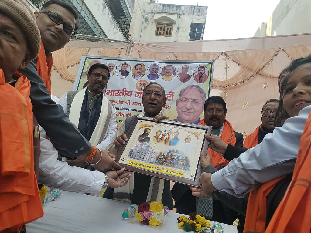 पटना सिटी 17 जनवरी। पटना साहिब विधानसभा क्षेत्र के पूरब द्वार मंडल में आयोजित सम्मान समारोह में पूर्व विधानसभा अध्यक्ष नंदकिशोर यादव और नव निर्वाचित विधायक रत्नेश कुशवाहा को अंग वस्त्र और तख्त श्री हरिमंदिर जी पटना साहिब के प्रतीक चिन्ह देकर सम्मानित किया गया।