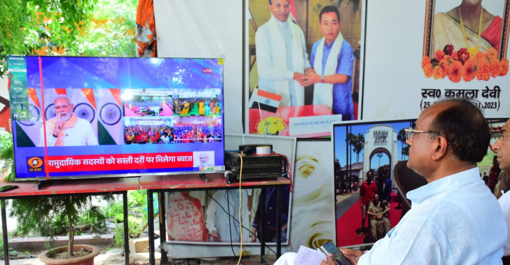पटना। बिहार राज्य जीविका निधि साख सहकारी संघ लिमिटेड के शुभारंभ के मौके पर मंगलवार को दीघा विधानसभा कार्यालय में कार्यक्रम आयोजित किया गया। स्थानीय विधायक डॉ. संजीव चौरसिया ने क्षेत्र की महिला उद्यमियों और पार्टी की वरिष्ठ नेत्रियों के साथ वीडियो कॉन्फ्रेंसिंग के जरिये प्रधानमंत्री और मुख्यमंत्री का संबोधन सुना। इसके लिए कार्यालय परिसर में बड़ी एलईडी स्क्रीन लगाई गई थी।