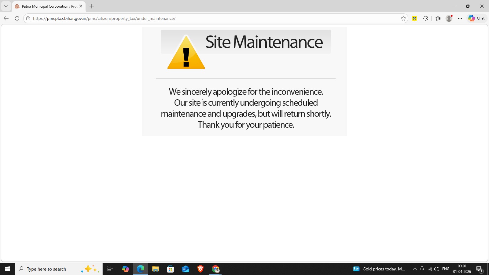 Patna, April 1, 2026: The online property tax portal of the Patna Municipal Corporation went down on March 31, the last date for property tax submission, leaving many residents unable to complete their payments on time.