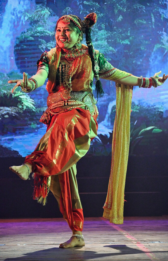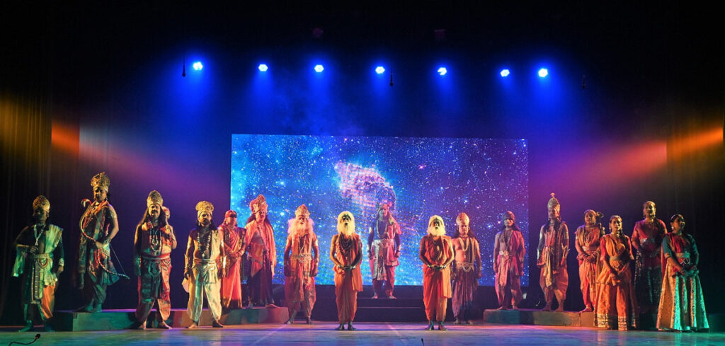 नाटक ‘वैजयंती’ में भगवान श्रीकृष्ण के जीवन के विभिन्न आयामों और उनके दार्शनिक दृष्टिकोण को प्रभावशाली ढंग से प्रस्तुत किया गया। कथा में गोपी लीला, महाभारत युद्ध के दौरान अर्जुन को दिया गया गीता उपदेश, तथा युधिष्ठिर को युद्ध के औचित्य का बोध कराने जैसे महत्वपूर्ण प्रसंगों को समाहित किया गया। प्रस्तुति में श्रीकृष्ण के दिव्य स्वरूप के साथ-साथ उनके मानवीय पक्ष को भी उकेरा गया, जो जीवन की जटिलताओं से जूझ रहे मनुष्य को समाधान का मार्ग दिखाता है।
