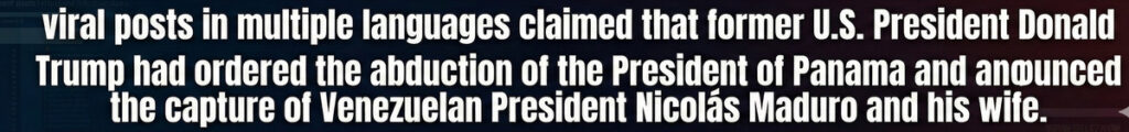 — A wave of confusion and concern spread across social media platforms on Tuesday after viral posts in multiple languages claimed that former U.S. President Donald Trump had ordered the abduction of the President of Panama and announced the capture of Venezuelan President Nicolás Maduro and his wife. The claims, which circulated rapidly on messaging apps and social networks, alleged dramatic military action and cross-border operations, triggering widespread debate and alarm.
